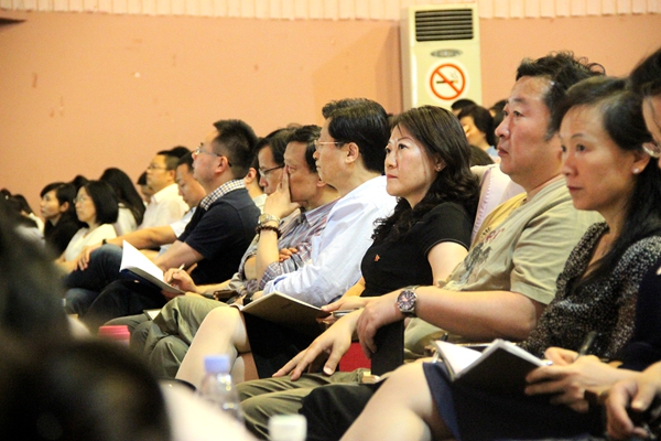 裴泽庆教授以《学习党章、遵规守纪,践行四讲四有》为题,从“为何学、学什么、怎么做”三个层次,就正确认识党章的地位和作用、党章的历史演进及其精神实质、增强党性修养、践行“四讲四有”等方面,详细阐述了如何树立共产主义理想信念,立足岗位做贡献,做一名合格的共产党员。裴教授说,党章的演进发展史,反映了我们党从幼年走向成年的历史过程,记录了我们党思想、理论、主张与时俱进的发展历程。党章是全党必须遵循的总章程总规矩,体现全党最高意志,代表全党最高权威,彰显全党最高规范,是党内的根本大法。习近平总书记指出“两学一做,基础在学,首先是学好党章。”强调把学党章摆在首位,实质上是对这个总规矩的全面回归,是对党章精神的自觉尊崇,是对党章各项规定的忠实践行。“四讲四有”中的每个“讲”、每个“有”,都来源于党章、依据于党章,是对党章精神和规定的高度凝练和集中表达。今天,在决胜全面小康、建设经济强省的新形势下,践行“四讲四有”仍然是传承历史与担当使命有机统一的实践过程,“四讲四有”为广大党员行事做人提供了时代标准和行为标尺,是合格党员的基本要求。报告中,裴教授还结合高校实际,系统地阐述了习总书记及党中央关于高等教育发展的相关论述和会议精神。裴教授的讲解旁征博引、深入浅出、思想深刻、见解独到,既有理论高度,又紧密联系实际,他的精彩报告获得与会人员的一致好评。