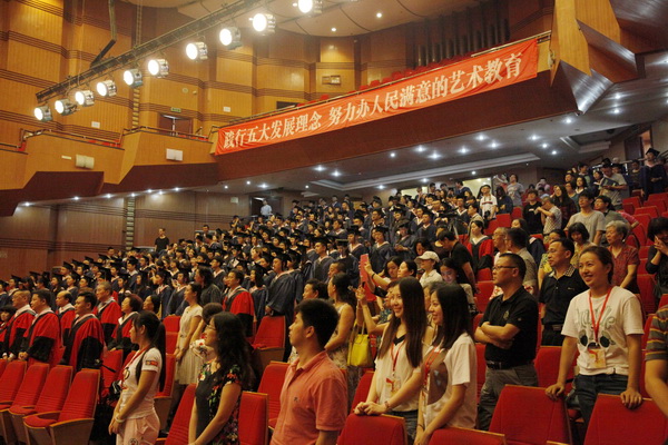 仪式在庄严的国歌声中拉开序幕。学校党委书记、院长、学位评定委员会主席林戈尔教授首先代表学校和学位评定委员会全体委员,向2016届全体研究生同学表示热烈的祝贺,向学生家长以及为同学们的成长付出辛劳的广大教职员工表示衷心的感谢。同时,他寄语毕业学子三点希望:“一是希望同学们拥有乐观向上的积极心态,在今后的工作中面对任何问题与困难,都能展现出艺术家的自信与坦然;二是希望同学们胸怀伟大的梦想,矢志不渝、不断进取,树立终身学习的理念,用读书与思考来武装自己、充实自己,用真知与灼见来回报父母、回报社会;三是希望同学们不要忘记母校的教导与嘱托,成为一个对国家、对社会负责任的人,在艺术事业之中有所作为的人,能够担当起时代重任的人。”