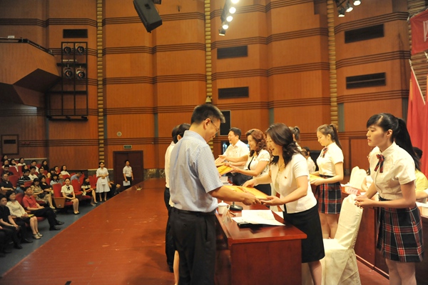 在全体起立高唱国歌后,表彰大会正式开幕。党委常委、副院长刘立云同志分别宣读了四川省委教育工委和学校《关于“表彰先进基层党组织、优秀党务工作者、优秀共产党员”的决定》。我校获得省委教育工委表彰的全省高等学校“先进基层党组织”1个、“优秀党务工作者”1名、“优秀共产党员”2名。学校党委在全校表彰了15个“先进基层党组织”、42名“优秀党务工作者”和148名“优秀共产党员”,并为12个“共产党员示范单位”、12个“共产党员示范团队”授牌。