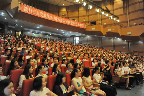 党委副书记、纪委书记文云英同志受在外出访的林戈尔书记委托,代表学校党委向全体党员师生致以节日的问候,并向受表彰的党组织和党员表示最热烈的祝贺。她说,中国共产党在95年的征程中,谱写了一部伟大的奋斗史,艰难的探索史,光辉的胜利史。在今天这个光荣而神圣的日子里,她要求我们要以川音人的身份展望未来,以共产党人的身份团结奋进:第一,学习、学习、再学习。一是学当守正。过去的一学年,在林戈尔书记、院长的带领下,学校班子和广大党员干部群众紧密团结,发挥昂扬斗志,使党建工作取得了积极进展和丰硕成果。二是学必笃实。“两学一做”,重点在学,关键在做。三是学以致用。将川音一代代传下来的好学风、正能量、好作风传承下去。第二,担当、担当、再担当。共产党人要肩负责任、敢于担当、坚守信念。一是担当要着力基层。二是担当要重在修养。三是担当要强化定力。第三,努力、努力、再努力。学校一直致力于办学发展,培养了大批优秀艺术专业人才,创作出了大批高水平的艺术作品,获得了诸多国内外重要奖项,川音在国内外享有很高的美誉度。新的起点,我们要加倍努力。一是努力坚守思想政治阵地。二是努力培养德才兼备的艺术人才。三是努力引领文艺创作导向。文云英副书记强调,川音已经进入改革发展的关键时期。去年以来,学校党委制定了“十三五”发展规划,还结合城市音乐厅建设向省上提出了三十条措施,明确了全面深度融入四川文化强省战略,积极引领助推成都音乐产业发展,做好产学研创与成果转化的川音发展新思路和新目标。各级党组织和广大党员要以表彰庆祝活动为契机,围绕中心,服务大局,团结一心,奋发有为,为实现学校“十三五”发展宏伟目标,为铸就川音振兴发展的新画卷,唱好川音好声音,讲述川音好故事。
