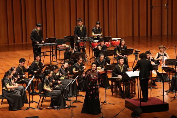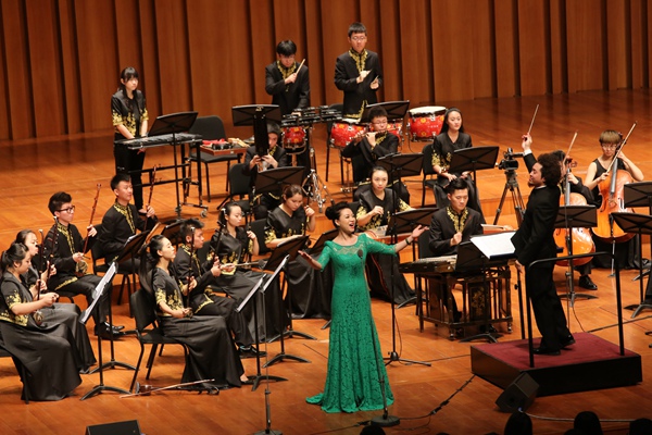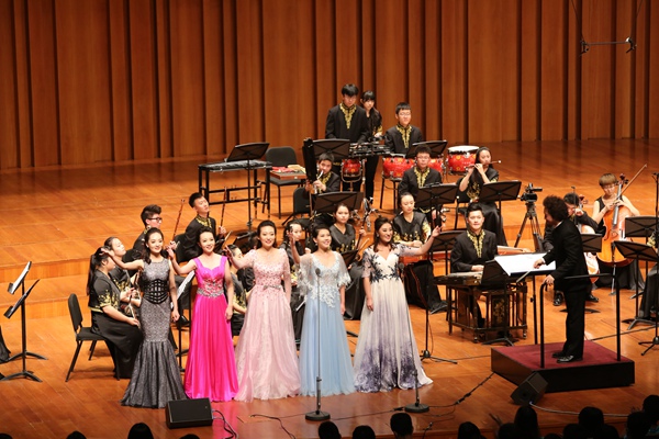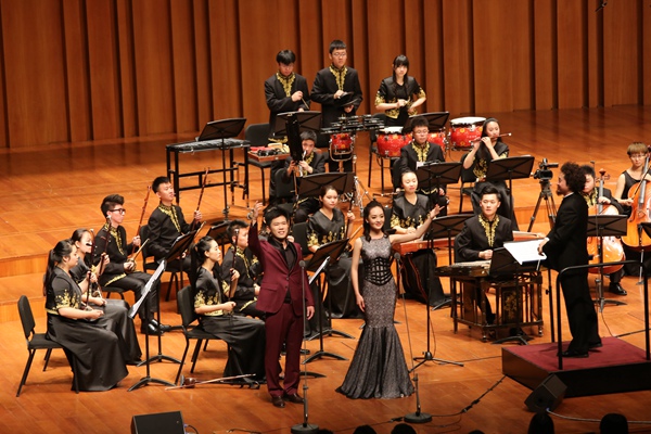 音乐会上,我校民族管弦乐团演奏了由我校党委书记兼院长、著名作曲家林戈尔创作的《藏区小景》、《节日欢歌》。《藏区小景》旋律极富藏族民族特色,热烈而朴实,使首都观众仿佛亲临美丽的香格里拉。《节日欢歌》旋律欢快,在音乐的沐浴下,人们欢聚一堂,气氛热烈,感情真挚,引人动情。