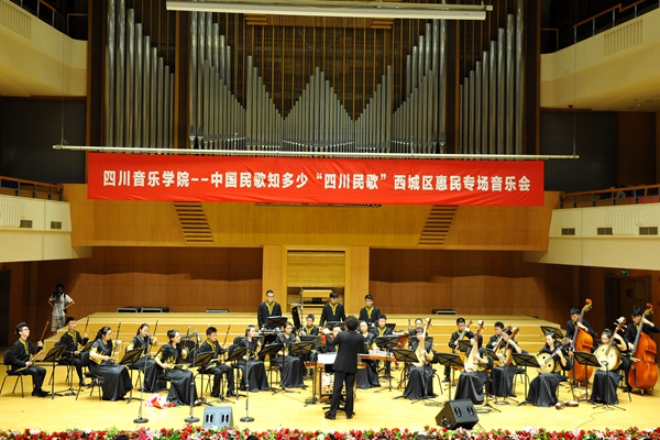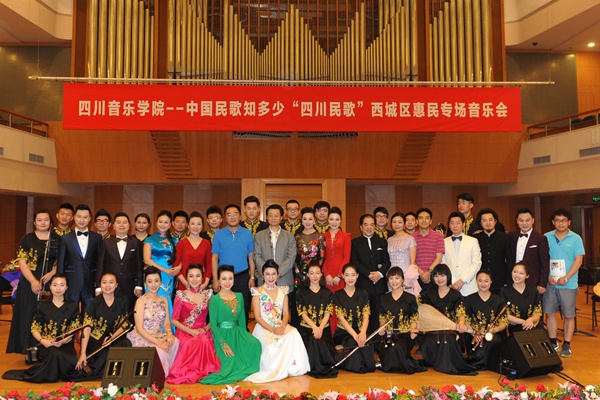 国家大剧院的演出由四川音乐学院与中国音乐学院联合举办,音乐会上除了主要由四川音乐学院老师们演唱地道的四川民歌外,中国音乐学院著名歌唱家吴碧霞、博士生周强、本科生蓝峻、于涵、李鑫、黄欣等也加盟演唱了《绣荷包》、《溜溜山歌》、《秀才过河》等四川民歌。