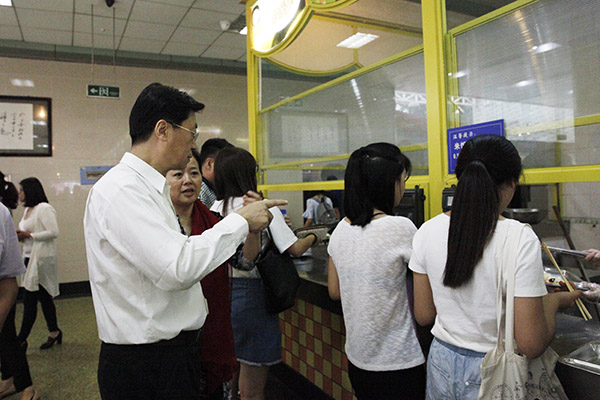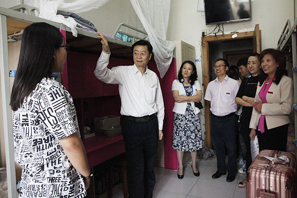 食宿是新生和家长最为关心的地方。校领导一行还走访了学生食堂、新生寝室,实地查看新生的食宿条件和入住情况,并要求学校相关部门积极做好新生生活与学习的各项保障工作。在新生寝室,校领导亲切看望了正在整理床铺的新生和家长,一名来自浙江的戏剧系新同学激动地说:“我没有选择本省的音乐学院,就是因为我太爱四川音乐学院了!”校领导对新生的到来表示欢迎和祝贺。在与新生的交谈中,林书记仔细询问学生的籍贯和入学专业、入学手续的办理情况等,并勉励新生尽快熟悉学校环境,适应大学生活和学习节奏,充分利用学校良好的学习、生活条件,发挥潜能,为自己的成人、成才和成功而努力奋斗。