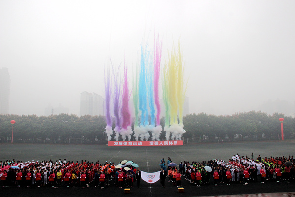 在全场热烈的掌声中,学院党委书记、院长林戈尔宣布:“四川音乐学院2016年全校运动会正式开幕。”七彩烟花腾空而起,由此拉开运动会的序幕。