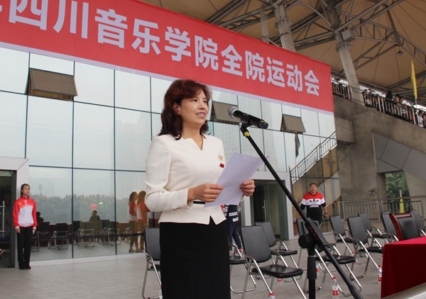 党委副书记、纪委书记文云英代表学院致开幕辞。她说,硕果累累的10月,是收获的季节。两天前我院迎来了“成都城市音乐厅”建设项目的开工仪式,将有利的推动我院加快打造世界一流音乐学院的进程。借助开工仪式的喜庆,全院运动会又在新都校区隆重召开!本届运动会将充分展现我院“素质教育”和“健康体育”的新风采、新成果。在全院师生的共同努力下,我院2016年全院运动会一定是一个文明、团结、胜利的运动会。预祝全体运动员取得优异的成绩,预祝本届运动会取得圆满成功!