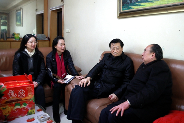 校领导先后分别去老领导、老专家、老教授、劳动模范和困难教职工家中,代表校党委、校行政向他们致以新年的美好祝愿,将慰问品送到他们手中,感谢他们为学校发展做出的无私奉献和付出的辛勤汗水。在和谐温馨的氛围中,校领导与他们亲切交谈,忆传统、拉家常、话改革、问冷暖,详细询问他们的身体健康状况、日常生活情况和子女的工作生活状况,认真倾听他们对学校改革发展的意见和建议,向他们介绍学校在申博、首个省级重点实验室、城市音乐厅等重点工作取得的成绩和今后改革发展的目标和方向,恳请他们继续关心、支持学校的工作,凝心聚力,为学校的各项改革发展献计献策。