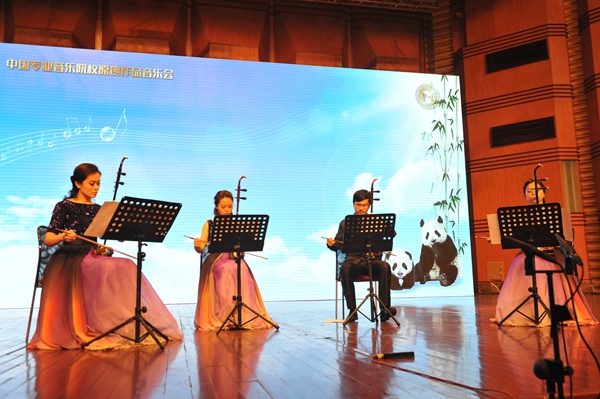 当晚,中国专业音乐院校原创作品音乐会在我校大音乐厅上演。这是中国11所专业音乐院校一次教学、舞台交流的盛会,各校都精选了最优秀的教师和学生参加本次音乐会演出。上海音乐学院中国鼓独奏《云之南》、哈尔滨音乐学院原创歌曲《我们与中国梦同行》、武汉音乐学院的二胡与扬琴合奏作品《秋词》、浙江音乐学院的单簧管独奏《独白》、天津音乐学院的女高独唱《黄山恋歌》以及中国音乐学院取材于湖南花鼓戏的胡琴四重奏《戏花鼓》、沈阳音乐学院歌剧《星星之火》选段、星海音乐学院原创作品《莱村女》、西安音乐学院的《大漠行》、我校选送歌剧《薛涛》唱段《十离诗歌》和中央音乐学院的室内乐《能量iv》等节目,一次次将联盟成立活动推向高潮。音乐会还特别邀请中国当代著名二胡演奏家、教育家、国家一级演员,中国音乐学院副院长宋飞教授演出了二胡独奏《光明行》。师生们的精彩表现赢得满堂喝彩。