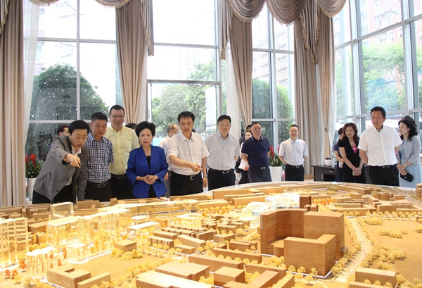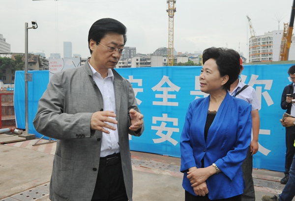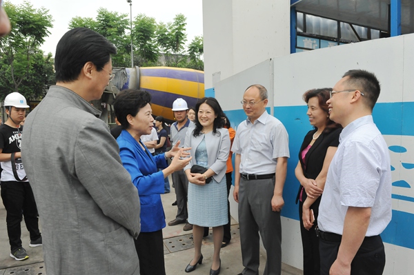 黄彦蓉副主任一行首先来到城市音乐厅展厅,参观项目规划沙盘和音乐厅建筑模型,并前往施工工地现场,查看工程建设情况。市建委主任张樵汇报音乐厅、音乐坊建设总体规划以及一环路下穿隧道、音乐大道设计方案和目前音乐厅建设工程进展情况。