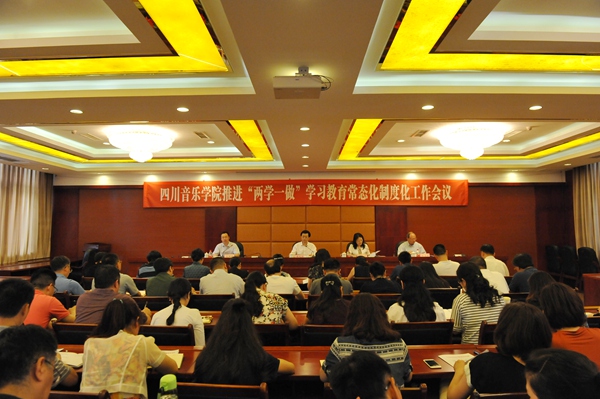党委书记、院长林戈尔同志作动员讲话。他指出,按照中央、省委统一部署,我校于2016年在全体党员中开展了“学党章党规、学系列讲话,做合格党员”学习教育,把思想政治建设摆在首位,切实树牢“四个意识”,坚持基础在学、关键在做,着力解决突出问题。学习教育开展至今,全校风清气正、崇廉尚实、干事创业、遵纪守法的良好政治生态正在形成。推进“两学一做”学习教育常态化制度化,是党中央着眼加强思想教育和理论武装、推动全面从严治党向纵深发展作出的重大决策部署,是以习近平同志为核心的党中央推动党内教育从“关键少数”向广大党员拓展、从集中性教育向经常性教育延伸作出的重大部署,也是当前和今后一个时期全校加强党的建设的重大政治任务。全校各级党组织要将推进“两学一做”学习教育常态化制度化与学校立德树人根本任务结合起来,与中心工作深度融合、与创新发展高等艺术教育,加快我校“双一流”建设结合起来,与开展师德师风建设的系列活动有机衔接起来,坚持两手抓、做到两促进,不断激发全校上下党员师生内生动力,将“两学一做”学习教育成效体现在学校创新改革发展中。