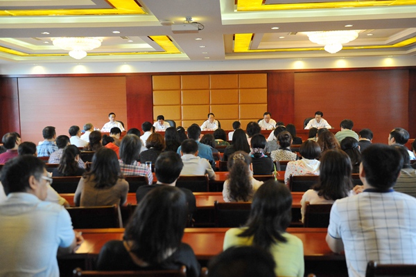 省委组织部干部三处处长杨立同志首先宣布了省委【川委(2017)410号】的文件通知:洪流同志任四川音乐学院党委委员、常委、书记;免去林戈尔同志四川音乐学院党委书记职务。