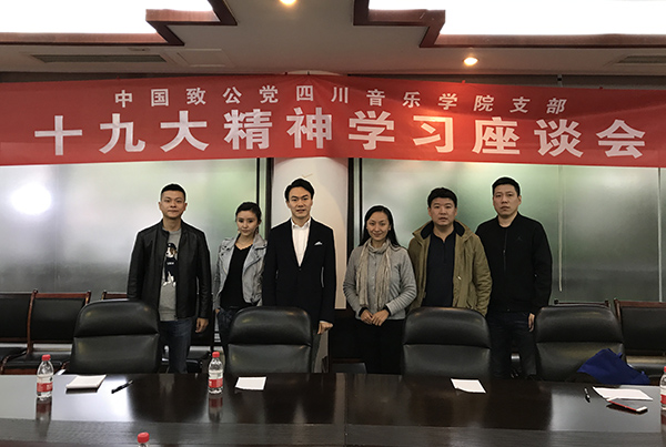 音乐教育学院分别针对教工支部和学生支部,提出了教师层面的“不忘初心、牢记使命,学高为师、身正为范,为培养新时代中国特色社会主义音乐教育工作者而努力奋斗”学习主题和学生层面的“学习十九大,为了青年强则国强而努力”学习主题。还举办了“喜迎十九大,重阳节贺卡制作大赛”,并组织师生赴温江区颐养居开展了“宣传党的十九大精神,送文艺到基层”活动。还将持续开展“重温入党誓词”活动和前往红色地区、革命老区开展“乘着十九大春风,送艺术下乡”活动等,用艺术的形式宣传、歌颂党的十九大精神。