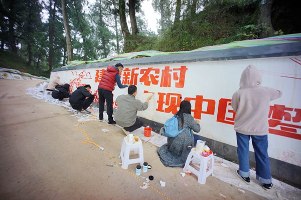 此外,学校各党总支还结合精准扶贫工作,通过电话联系、进村入户慰问,对结对帮扶家庭宣讲党的十九大精神,为他们讲解党的各项新政策新措施。美术学院师生为学校定点精准扶贫村——广元市昭化区王家镇文星村设计制作了党建文化墙,采用村民们乐见的民间年画形式设计创作,在内容中凸显党的十九大精神和社会主义核心价值观,成为当地一道靓丽风景线。