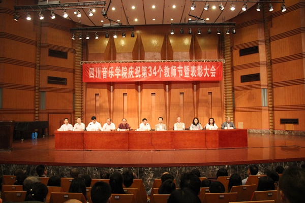 教师代表、获得四川省优秀教师称号的作曲系主任杨晓忠教授在大会上分享了自己33年教师生涯的成长经历和感悟。他说,教师是品行之师,立德树人、教书育人是教师的神圣使命;教师是梦想奠基人,为每个孩子播种梦想、点燃梦想,并帮助他们实现梦想;教师是信念浇铸人,是学生价值观的培育者;教师是大爱撒播人,让学生在爱中成长;教师是辛勤的园丁,用自己的艰辛,换来百花盛开。“教师节”不单单是一个节日,更是一种对我们的提示,时刻提醒着我们教师的责任与使命,牢记我们的责任和使命,这样我们才能最终肩负起时代赋予我们的重任。