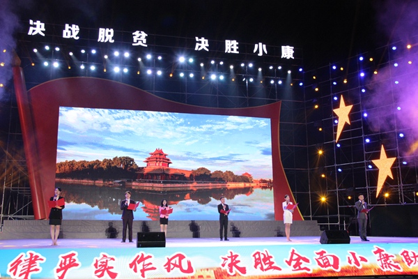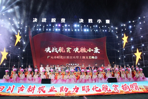 当晚,由学校与昭化区委、区政府共同主办的“决战脱贫•决胜小康——广元市昭化区脱贫攻坚主题文艺晚会”在元坝中学上演,学校文艺小分队与当地基层文艺骨干、文艺爱好者们将昭化区发生的脱贫攻坚故事搬上舞台,用飞扬的歌声、翩翩的舞姿,唱响了昭化区脱贫攻坚之歌。广元市委、市政府领导,驻村脱贫第一书记,全区各条战线的干部职工和为推动脱贫工作作出贡献的社会各界人士代表等同当地群众一起现场观看了晚会。