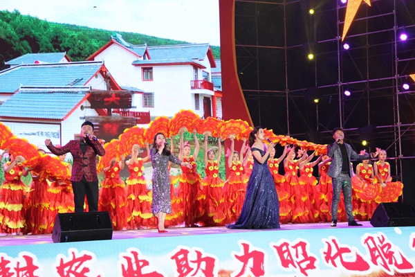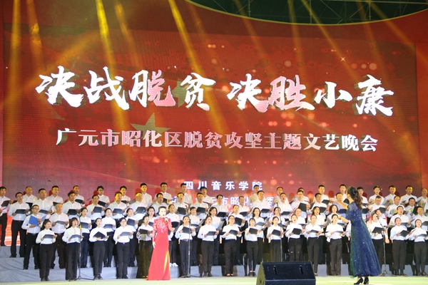 晚会在气势磅礴的大合唱《脱贫攻坚之歌》中拉开帷幕,以“不忘初心”、“牢记使命”、“决胜小康”三个篇章,将取材于昭化脱贫攻坚一线的感人故事,通过歌舞、音诗画、小品、情景表演等形式呈现,讴歌脱贫攻坚伟大事业,点赞奋战在脱贫一线的干部群众。晚会上,由学校专家、教授带领师生深入乡村一线,结合昭化区脱贫攻坚工作而潜心创作的《脱贫攻坚之歌》《担当》《把小康带回家》《决胜小康》《只想跟你走》《一位老农的歌唱》等脱贫攻坚组歌,唱出了老百姓和奋战在脱贫攻坚一线的扶贫干部们的心声;《最牵挂的人》表达了党和政府对贫困户的悉心关怀;《我把心留在了昭化》唱出了川音人心系昭化的深情厚谊;《扶贫永远在路上》讲述了川音人对扶贫对象精确识别、精确帮扶,发挥集体智慧共同努力帮扶贫困户创业脱贫的感人故事……这些精心打造的文艺节目是川音师生贯彻落实习近平总书记在文艺工作座谈会上重要讲话精神,深入生活、扎根人民创作反映时代呼声、展现人民奋斗、振奋民族精神、陶冶高尚情操的优秀作品的体现,川音人用高质量的文艺作品把党的创新理论、党的声音、党的脱贫政策传递到群众身边,为昭化区的脱贫攻坚、乡村振兴凝聚力量。昭化区文艺骨干和文艺爱好者则带来了小品《不能没有你》、说唱节目《花灯》、讲故事《老郭脱单记》《山乡飘满泡菜香》、舞蹈《跟着希望走》等,用文艺的形式展现了昭化区脱贫攻坚工作一线感人故事,表达了昭化群众摆脱贫困的坚定信心和用勤劳双手脱贫奔康致富,创造更加美好生活的决心。