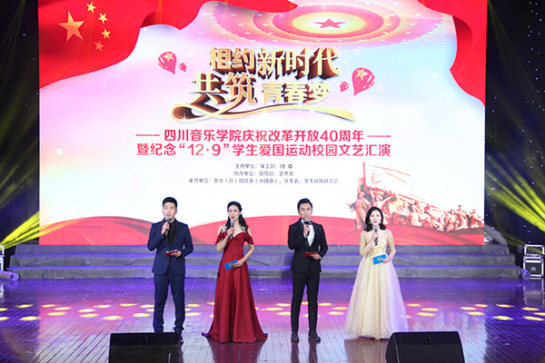 此次“相约新时代·共筑青春梦”四川音乐学院庆祝改革开放40周年暨纪念“一二·九”学生爱国运动校园文艺汇演为不仅为师生们提供了展现青春风采的舞台,也为我们带来了一场歌舞飞扬、正义爱国的青春盛宴。让我们沿着革命先辈的光荣足迹,乘着改革开放四十年的春风,秉承着川音“尚美,创新”的精神,以习近平总书记新时代中国特色社会主义思想为指引,在党的领导下,不忘初心,砥砺前行,为实现中华民族伟大复兴中国梦而努力奋斗!