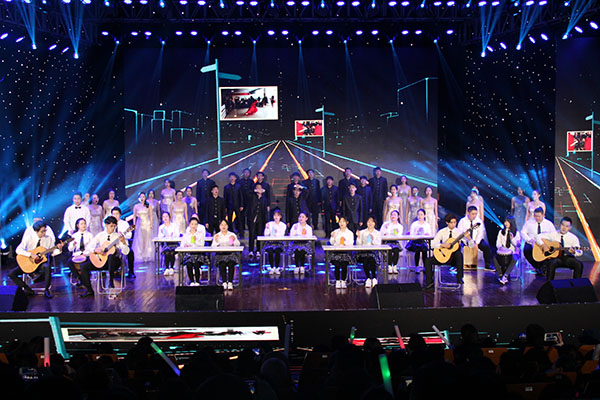 晚会在激情洋溢的表演唱《赞赞新时代》中拉开帷幕,校研究生会、学生会、学生社团联合会的同学们深情演绎新时代的到来,国家日新月异的变化,美好的未来可期,让人们情不自禁‘赞赞’。晚会紧扣“相约新时代·共筑青春梦”的主题,题材新颖、构思巧妙、内容丰富、形式多样,不仅弘扬了当代艺术院校学生爱国、爱校、爱青春的精神;同时也展示了在改革开放40周年的指引下,我们已进入了飞速发展的新时代。由流行音乐学院带来的《炫舞青春》展现了川音学子用自己朝气蓬勃的青春和奋进拼搏的态度演绎出“新时代,新青年,新力量”,传递梦想正能量;艺术附中带来的获得首届“艺术职业教学研讨交流活动”暨“芳华杯”最佳展演奖的舞蹈《金陵十三钗》,精彩演绎了“商女也知亡国恨,教堂绝唱秦淮景”,生动展现了十三位女子敢于担当的侠义精神;国际演艺学院的配乐朗诵《四十年筑梦辉煌》回首展望,中国以羸弱之躯成就了一场伟大革命,在“深化改革”和“转型升级”的国家战略推动下,中华儿女艰苦奋斗铸就了中国今天的辉煌;音教学院的舞蹈《住上好房子》展示了作为当代的青年学子以近年我国提出的“精准扶贫和2020全面小康”为己任,积极投身于扶贫攻坚的工作中,开展了一系列的“文化扶贫、教育扶贫、艺术扶贫、产业扶贫”等活动,并取得了丰硕的成果,让更多的人过上好日子,住上好房子......一个半小时的演出现场,掌声、欢呼声此起彼伏,沸腾了整个音乐厅。最后,晚会在歌舞《再一次出发》的纵情歌唱舞蹈中圆满结束。