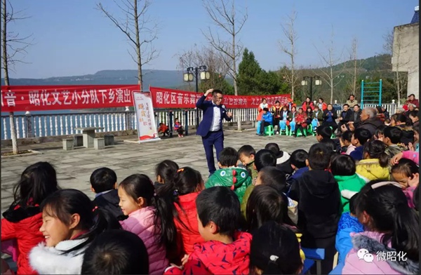 在昭化区晋贤乡保民村,黄龙乡黄金村、水磨村,我校民族声乐系、民乐系、歌剧合唱系青年教师与昭化区文艺骨干共同组建“飞入寻常百姓家——川音•昭化文艺小分队”,为当地村民带来我校专家教授根据昭化区脱贫攻坚工作所创作的文艺作品,走到田间地头、走进农家小院。我校教师演唱了歌颂党的经典名曲《草原上升起不落的太阳》、具有浓郁民族特色的《小放风筝》和我校脱贫组歌中的《一位老农的歌唱》《我把心留在了昭化》《快乐绽放》《万事如意》《把小康带回家》等曲目,并带来唢呐演奏《好汉歌》等,与村民们围坐在一起,将党的创新理论、党的声音和脱贫政策传递到群众身边,以喜闻乐见的形式让观众应接不暇,掌声、喝彩声此起彼伏,演绎出了一幕幕欢乐、祥和、幸福的贫困村脱贫致富创造美好新生活的新农村场景。