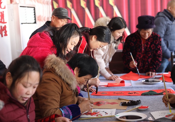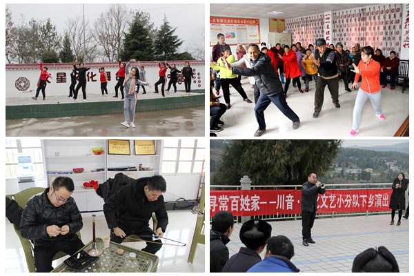 在我校定点帮扶点——王家镇文星村,美术学院师生手把手教乡亲们绘年画、涂颜色,写春联、送“福字”;基础部体育教研室青年教师与村民进行了击鼓传球、套圈等趣味互动游戏,并现场指导村民们打门球和练太极;音乐教育学院舞蹈专业青年教师对村舞蹈队进行广场舞指导,教授了藏族舞《次仁拉索》;民乐系青年教师对村活动室民乐乐器进行了维护和调试,为村民演奏了唢呐《百鸟朝凤》《好汉歌》和二胡《赛马》《毛主席你是我们心中的红太阳》《在那桃花盛开的地方》《没有共产党就没有新中国》等。校领导还深入到文星村贫困户家中话家常、聊近况,细致了解他们的家庭情况、健康状况和生产生活等情况,听取他们目前存在的困难和问题、对生产生活方面的主要打算和诉求,把党和国家最新政策和精神做了进一步宣讲,并送上代表全校师生心意的慰问品,鼓励他们保持乐观向上的生活态度,增强战胜贫困的信心和勇气,充分利用自身优势和资源,摆脱贫困奔小康。贫困户纷纷表示,感谢党和政府的关心,感谢川音师生无微不至的关怀和帮扶,相信在党的坚强领导下和川音师生的真情关爱下,日子一定会蒸蒸日上,越过越好。