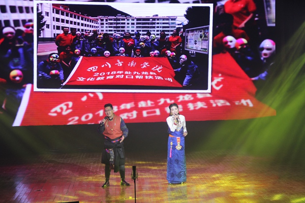 值得一提的是,四川音乐学院在精准扶贫工作中发挥专业优势,采取“送教下乡”和“上挂学习”方式,大力支持发展贫困地区文化艺术教育,量身定做声乐、舞蹈、音乐创作等培训课程,为当地培育一支不走的文艺人才、文艺骨干队伍,让他们成为文化教育扶贫的“火种”,以点带面,形成“星星之火,燎原之势”。这次晚会,由四川音乐学院培养的来自广元市昭化区和甘孜州九龙县的基层文艺工作者和文艺骨干也登台演出,他们把从川音学习到的艺术表演知识和技巧运用到具体实践中,不仅给文化教育扶贫工作交上了一份满意的答卷,也代表贫困地区群众向党和政府及帮扶单位表达了真诚的感激、感谢之情。