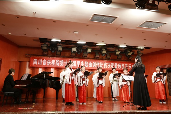 决赛暨颁奖音乐会由四川音乐学院副院长孙洪斌教授,作曲技术研究所主任宋名筑教授,作曲系系主任杨晓忠教授,声乐系总支书记江向东教授,民族声乐系副系主任邓芳丽教授,作曲系杨新民教授、昌英中教授组成终评评委组,对作品进行现场打分。