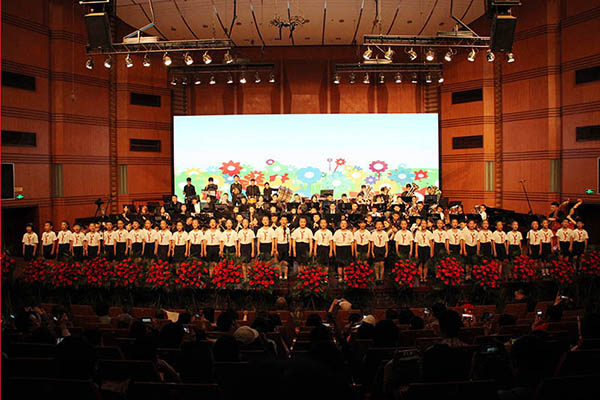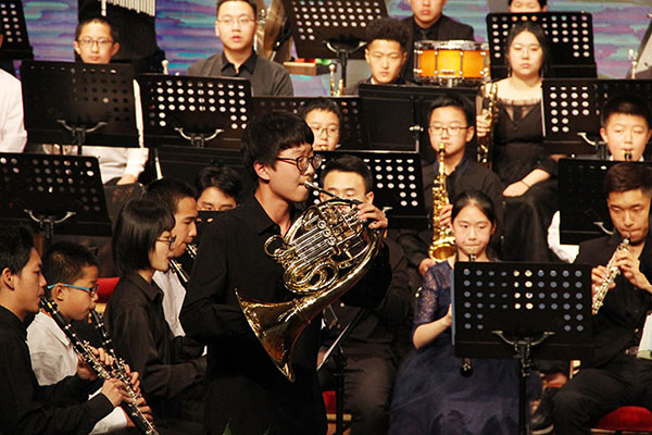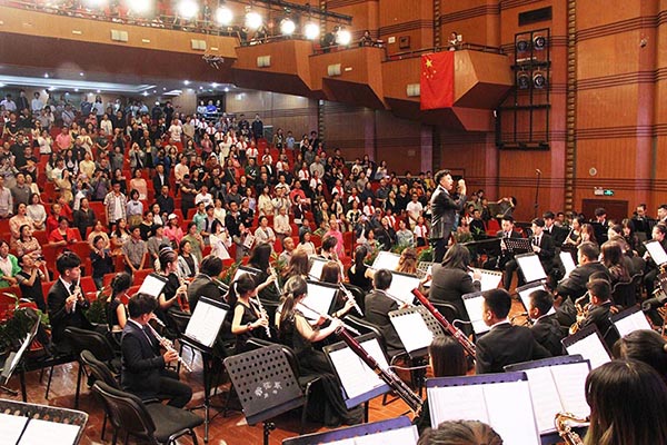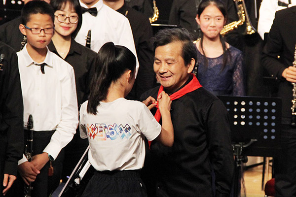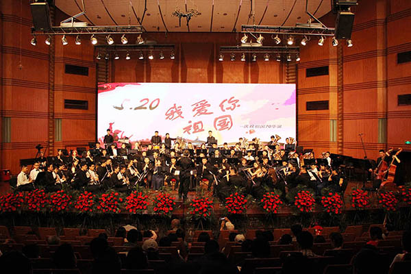 本次音乐会,管弦系专程邀请了四川青少年交响管乐团、尔闻青少年交响管乐团,四川大学西航港实验小学合唱团的孩子们与我校管弦系交响管乐团的大学生哥哥姐姐们,同台演出。音乐会在小号教育家、演奏家谢岳教授的挥棒下拉开帷幕。管弦系交响管乐团和四川青少年交响管乐团联袂演奏《雄鹰飞翔》《巴比伦河畔》《阿斯兰公园》《牧歌》。让观众们仿佛跟随雄鹰的翅膀,飞越恬静安详的巴比伦河和迷人的山城阿什兰,最后来到美丽富饶的大草原。在儿童节即将到来之际,两首专门为孩子而作的歌曲,由四川大学西航港实验小学合唱团唱响。《歌声与微笑》唱出少年们心中对未来的美好憧憬,让《少年先锋队队歌》响彻祖国的大好河山。下半场音乐会由我校青年指挥杨瑞峰执棒,成都耳闻青少年交响乐团接力四川青少年交响管乐团与管弦系交响管乐团共同演奏经典中国交响作品《红旗颂》《我的祖国》《北京喜讯传边寨》《我爱你中国》《走进新时代》。这些耳熟能详的红色作品奏响了党和国家事业取得的历史性成就、发生历史性变革的时代旋律;见证了久经磨难的中华民族从站起来、富起来到强起来的历史性飞跃。《歌唱祖国》优美动人的旋律,将音乐会的气氛推向了高潮。观众们纷纷起立,跟随音乐“歌唱祖国”,唱出了每个华夏儿女对祖国的拳拳赤子心,深深爱国之情。