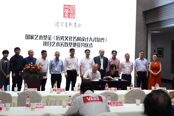 最后,进行国家艺术基金《历史文化名村设计人才培养》项目艺术实践基地的签约仪式,乐山市夹江县人民政府、成都市新都区人民政府分别与四川音乐学院城市与环境艺术研究院签订战略合作协议。