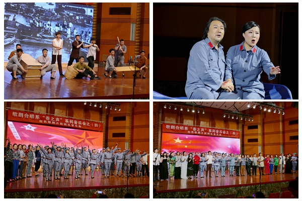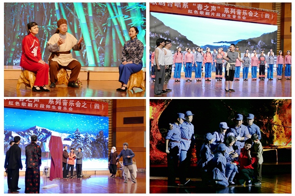 音乐会精选了众多耳熟能详的红色歌剧选曲选段,包括歌剧《洪湖赤卫队》选曲、歌剧《党的女儿》选段、歌剧《大江船夫》第一幕第二场、歌剧《白毛女》选段、歌剧《沂蒙山》选段、歌剧《扬子江暴风雨》选段、歌剧《方志敏》选段、歌曲《四渡赤水出奇兵》(选自《长征组歌》)等,唱段既充满革命英雄主义气概,又优美动听。歌剧合唱系师生用歌声演英雄、学典型,重温革命历史,向前辈致敬,用舞台艺术展现那段峥嵘岁月的不易和艰难。大合唱《我爱你中华》《歌唱祖国》则抒发了师生爱党爱国的真挚感情。整场音乐会气氛时而肃穆、时而振奋、时而激昂,一首首经典的传唱曲目让师生们重新认识到从战火硝烟中走出来的新中国是多么的百折不挠,中华民族在每个时期都不乏坚毅的脊梁。