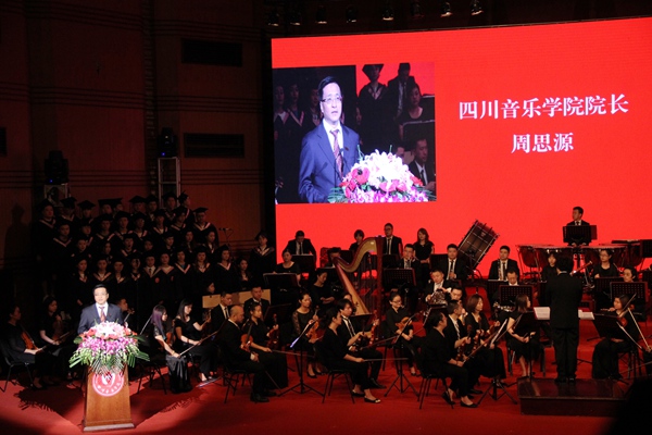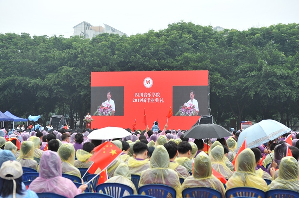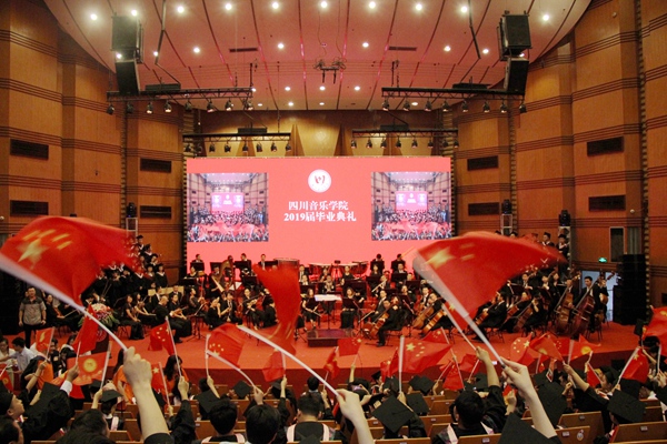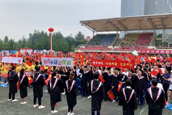 交响乐团、合唱团、流行行进打击乐团、毕业学子共同演绎的快闪节目《友谊地久天长》《送别》将毕业典礼推向高潮,学子们高举“我是川音人”、“感恩川音 青春起航”、“川音永远是我家”、“情系川音 志在四方”等自制标语牌,挥舞着国旗、校旗,现场欢呼声、掌声不断。四年的川音求学时光,师生们相互守望、共同努力,用辛劳和汗水为成长奠基,谱写了一曲昂扬向上的青春赞歌。