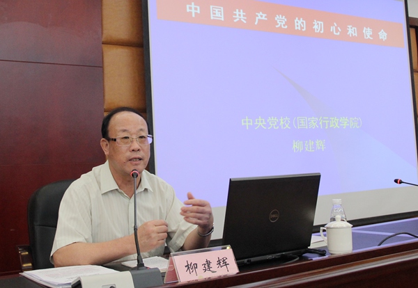讲座中,柳建辉教授从“党的初心和使命的由来及基本内涵”、“新时代中国共产党的历史使命”两个方面梳理了“不忘初心、牢记使命”的历史沿革、理论基础以及伟大成就。他解析了“十九大从坚定不移全面从严治党的高度部署‘不忘初心、牢记使命’主题教育活动”以及“‘不忘初心、牢记使命’主题教育的总要求、根本任务和具体目标要求”,并根据习近平总书记系列重要讲话精神,阐释了新时代赋予共产党员初心和使命的新内涵,党员干部该如何坚守入党初心,履行职责使命,保持奋斗精神和革命精神等问题。