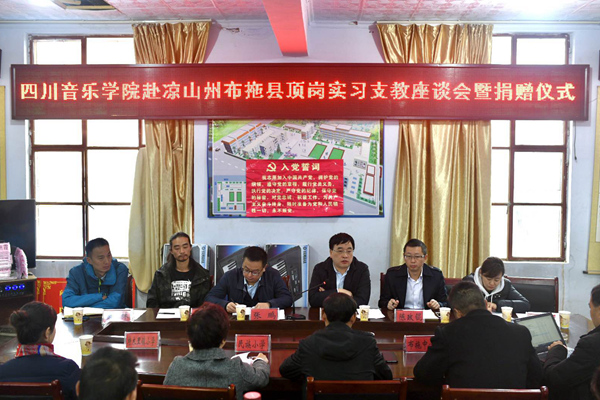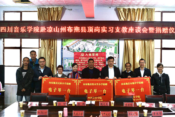 会上,魏书记代表学院向布拖县特木里镇中心校、民族小学、布拖中学捐赠了音乐教学设备,用于改善当地音乐教学条件。