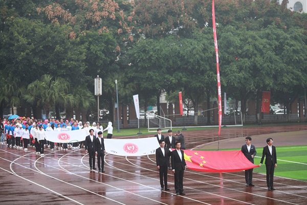 庄严肃穆的升国旗仪式后,院长刘立云致开幕辞。他说,在这个细雨飘飘的日子,在欢庆祖国70周年华诞、喜迎川音建校80周年的美好时刻,2019年全校运动会隆重召开。运动会是学校全面贯彻落实党的教育方针,活跃师生文化生活的重要举措,也是对学校体育工作的一次检阅,更是川音人不忘初心、不怕困难、迎难而上精神的集中体现。他指出,全校师生要以本次运动会为契机,进一步树立快乐学习、健康工作的理念。在紧张的学习工作之余,积极参加各项体育运动,享受阳光体育,拥抱美好生活。他希望,运动员精神饱满,斗志昂扬,服从裁判,规范参赛,赛出风格,赛出水平;希望裁判员和工作人员忠于职守,公正裁判,热情服务,创造和维护良好的比赛秩序;希望师生观众服从大会管理,团结友爱,文明守纪。预祝本次运动会取得圆满成功。