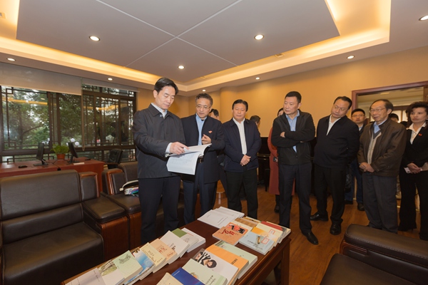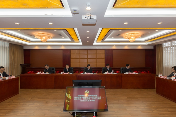 实地考察后,甘霖部长一行与学校党委领导班子成员、党委委员、纪委委员、主题教育领导小组成员、系(院)负责人和师生党员代表等召开座谈会。