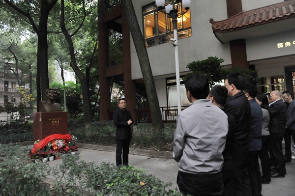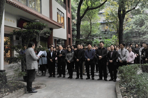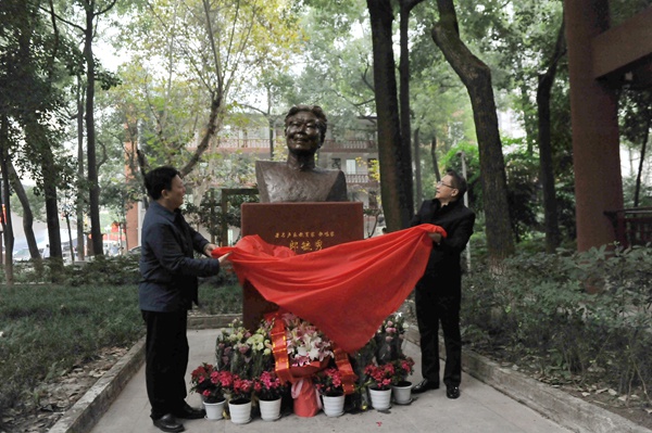 党委书记周思源在仪式上致辞,表达了对郎毓秀先生崇高的敬意和深切的怀念。他指出,郎毓秀先生是我们川音的骄傲,是整个声乐界的骄傲。她的教育理念、教育思想以及高尚的人格魅力一直影响着每一位声乐后学。今天,我们在这里举行郎毓秀先生雕像落成揭幕仪式,不仅是要纪念郎毓秀先生,更是要沿着先生的足迹,把先生未尽的声乐事业延续下去、传承下去。“江山代有人才出”,也希望我们川音的师生们以郎毓秀先生为楷模,求真务实,开拓进取,奋勇向前,谱写出无愧于前辈期望、无愧于师生重托、无愧于时代呼唤的学校发展新篇章。