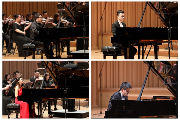 音乐会上,钢琴专业学子王心源、孙麒麟、李鑫燚和钟航以精湛的演奏技艺以及与乐队的完美配合,为观众带来了一场钢琴艺术盛宴。这四位学子现在正分别求学于茱莉亚音乐学院等世界顶级名校,他们中既有利兹国际钢琴比赛获奖者,又有“文华”、“小金钟”等国家级奖项的获得者,这次他们是专程从海外飞回为母校的八十华诞献礼。