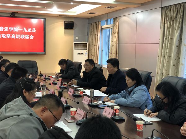 在12月3日下午举行的“四川音乐学院——九龙县脱贫攻坚高层联席会”上,九龙县领导介绍了九龙县情概况、学院对口帮扶工作情况和下一步帮扶工作期望。刘立云院长代表学校向九龙县委县政府对川音定点帮扶工作给予的支持以及对学校在九龙县挂职的老师给予的关心和帮助表示感谢。他表示,九龙干部群众“艰苦不怕吃苦、缺氧不缺精神”的激情和干劲让人感动。作为西南地区唯一一所专业音乐院校,川音充分发挥学校自身人才、学科、文化等方面的优势,积极探索精准扶贫的帮扶新模式,结合九龙县脱贫攻坚的工作实际,在教育帮扶促民生、人才帮扶派干部、文化帮扶出规划、产业帮扶助发展等多个方面取得了成效。刘立云院长指出,下一步,学校将在厚植扶贫情怀上下功夫,在校地合作推进上下功夫,在拓展帮扶模式上下功夫,在脱贫攻坚、乡村振兴和培养干部上下功夫,要更具体、更扎实、更有成效的推动教育扶贫、人才培养、消费扶贫等工作,助力九龙早日实现全面小康的奋斗目标。