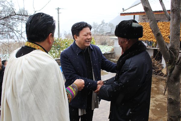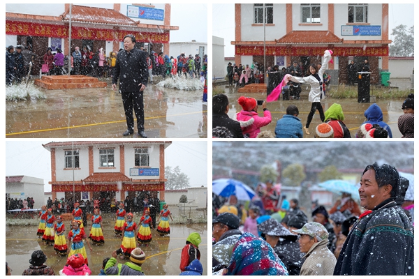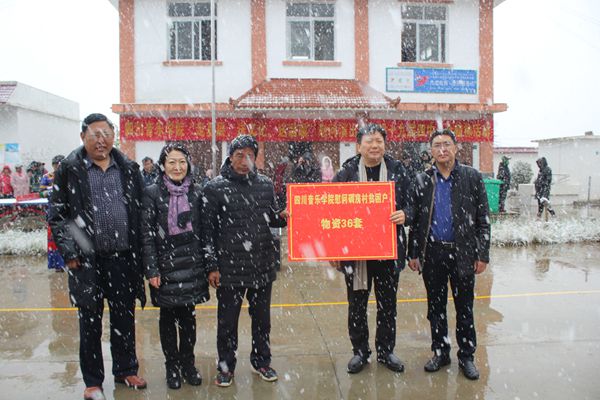 12月4日,刘立云院长一行来到距离县城100余公里的我校定点帮扶村——小金乡碉房村,顶着严寒,冒着大雪在村民活动中心广场开展“走基层、送文化、送温暖”慰问演出和十九届四中全会精神宣讲活动。并考察了村活动中心,慰问了贫困户和学校挂职扶贫干部,向贫困户发放了慰问物质36套,向小金乡中心小学捐赠了价值20000元的乐器。