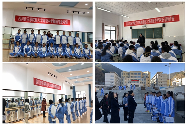 活动期间,刘立云院长一行调研了九龙县农副产品,就消费扶贫工作与九龙县相关部门进行了深入细致的研讨;赴九龙高中慰问了我校对口帮扶碉房村就读于九龙高级中学的困难学生,江向东、黄卓两位老师为该校艺术特长学生举办声乐和舞蹈专题讲座;夏裴老师为小金乡中心小学师生举办了竖笛演奏培训。