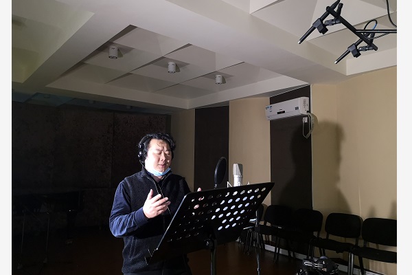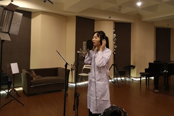 电子音乐系通过对四川省人民医院推选的,数位医护人员手机自录的演唱音频进行筛选,选拔出四位护士进入录音棚录制。2月23、24日,学校积极解决非常时期用录音棚的棘手问题,在川音尚美文化传播有限公司的大力支持下,由唐杰老师进行录音,我院声乐系周容生老师、省人民医院4名医护人员,终于完成了两首歌曲的录棚和演唱工作。