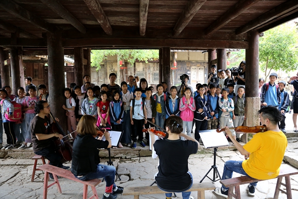 艺术是抽象的,但艺术带来的潜移默化的改变是实实在在的:在昭化古城,当艺术家们的音乐奏响,现场的老百姓自发地保持着演出现场的安静。在文星村,村民们拍着手打着节拍,跟随艺术家们的情绪一起投入,在乡间田野追求艺术带给他们最原始的快乐。在柏林古镇,小提琴的旋律播撒下音乐的种子在柏林沟小学的同学们心中萌化。这一切都源于艺术之力给乡村带来的改变,让人们对美好的生活充满向往,对未来充满期待,对脱贫攻坚取得最后的胜利充满信心。