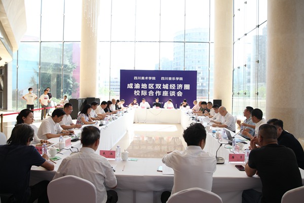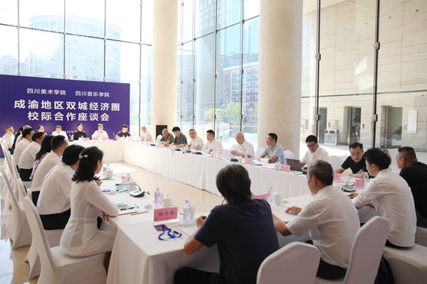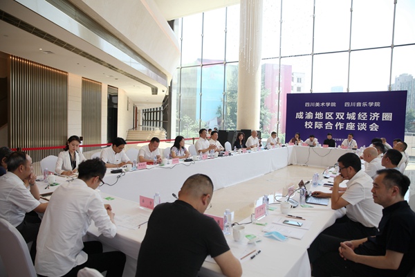 两校校领导和专家们紧紧围绕共同推动成渝地区双城经济圈高质量发展做了交流探讨。双方一致认为,成渝地区双城经济圈建设是习近平总书记站在中华民族伟大复兴、统筹协调发展的高度作出的重要部署,为成渝地区打造内陆开放高地指明了方向、提供了路径、明确了目标。四川音乐学院和四川美术学院紧密合作,是落实重庆市委市政府、四川省委省政府深化合作推动成渝地区双城经济圈建设的重要行动。成渝地区要高质量发展,要打造高品质生活宜居地,离不开艺术的精神引领。如何把人民群众对文化艺术日益增长的需求,转化为艺术教育、文艺产业推动经济社会发展新的“起跳点”,是两所专业艺术院校协同合作的重点。