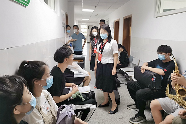 为切实保障广大考生的生命安全,保证专业考试安全有序进行,学校严格按照新冠肺炎疫情防控方案落实各项防控措施,在高考后采取分时段错峰现场专业考试。所有考生必须提供7日内核酸检测阴性证明、健康信息监测记录表、防疫健康绿码;并于专业考试前一天到考点大门外设置的考生防疫材料检验处接受检验;检验合格后方可取得专业考试准考证上加盖的“防疫材料已检验”专用章。考试当天,需要进行体温检测、出示防疫健康绿码,才能持准考证进入考场参加考试。