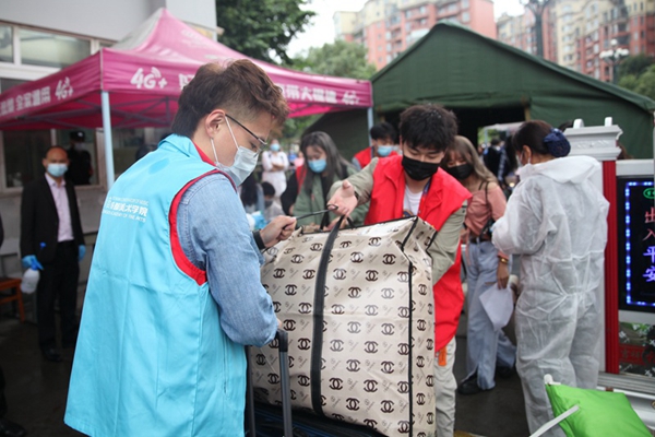 与往年不同的是,因为疫情防控要求,今年家长不能进入学校,为保证入校环节的安全、高效、顺畅,学校进一步强化以学生为本的服务理念,切实把人性化服务落到实处,安排学校工作人员和青年志愿服务者开展“一对一”服务,他们在学校门口一方面为家长耐心做好解释工作并为他们提供咨询和帮助,一方面帮助新同学搬运行李,帮助他们完成入校报道的全流程。从出示录取通知书、健康绿码和核酸检测报告,到行李消毒,再到专人引领学生前往各自系院报道注册,过程比以往繁琐,但大家相互配合、任务明确,虽然紧张忙碌,但秩序井然、有条不紊。贴心、周到的服务工作让家长和新同学切切实实感受到来自学校的关怀、温暖和重视,温馨热烈的校园氛围、文明和谐的现场秩序,让川音给新生和家长留下了美好的第一印象。
