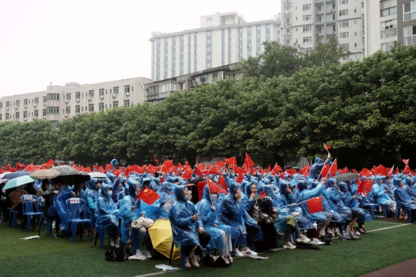 典礼在庄严的国歌声中拉开了序幕,全校师生怀着崇高的敬意注视着国旗冉冉升起,齐唱国歌,表达了爱国爱校的深厚情怀。