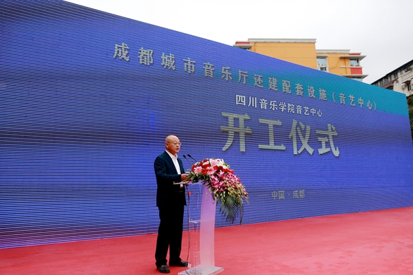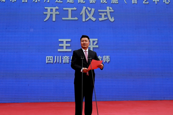 学校教职工代表王平在开工仪式现场发言。他说:“四川音乐学院音艺中心的建设将有利于学校学科的发展和人才的培养,为教学实践、学术交流和科研活动提供了一个新的平台,同时也能为成都市文化艺术建设增添新的色彩。”