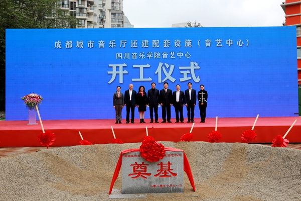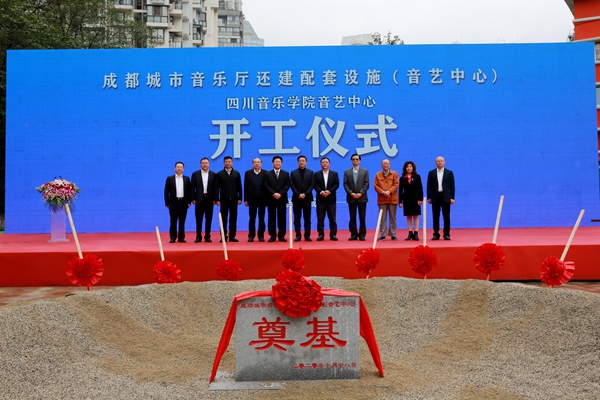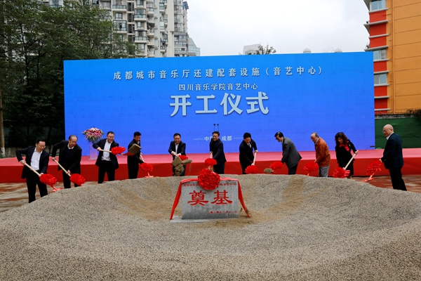 10时许,党委书记周思源隆重宣布:“成都城市音乐厅还建配套设施——四川音乐学院音艺中心项目开工仪式正式开始!”嘉宾共同来到台前执红绸铁铲铲沙入坑,为项目奠基。