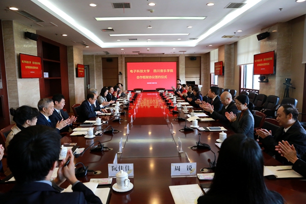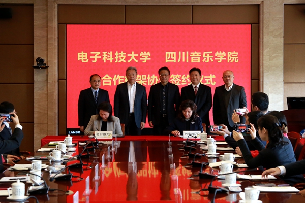 周思源在签约仪式上指出:电子科技大学在艺术与科技融合方面思想非常解放,走在前列,学校管理有序,精致品位,有许多值得音乐学院学习的地方。近年来,艺术与科技的融合越来越受到关注和重视,艺术离不开科技,本次两校的牵手合作,就是要不断探索音乐与科技的紧密融合,同时有力推动川音的改革发展,对电子科大多学科建设和人才培养也有促进作用。双方要本着“优势互补、资源共享、互惠互利、共同发展”的原则,在信息科学与艺术的交叉领域取得创新突破,服务社会主义文艺繁荣发展,要安排专人专班,制定工作计划,研究细化措施,提出一个个可操作性的项目,在今年内完成四项工作任务,取得阶段性成效。