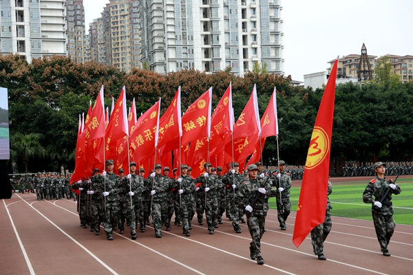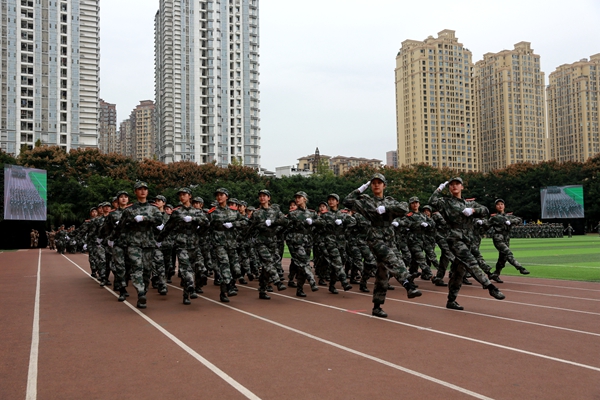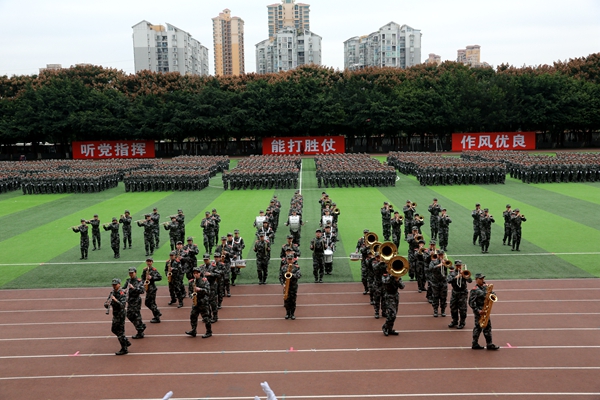 军训结业典礼在全体合唱的《强军战歌》中圆满结束。