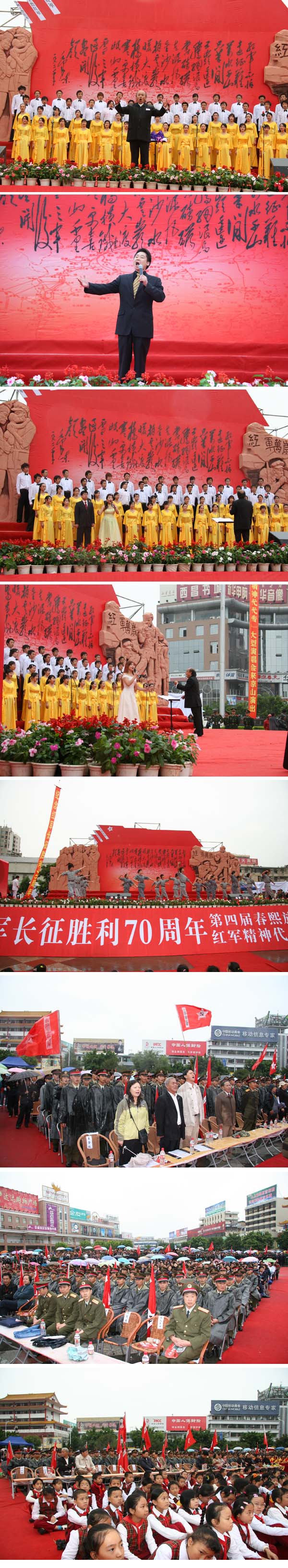 由中共四川省委宣传部、四川省文联等单位主办,由四川省音乐家协会、四川音乐学院等单位承办的纪念红军长征胜利70周年“红军精神代代传”大型巡回演唱会首站演出于9月14日在西昌举行。