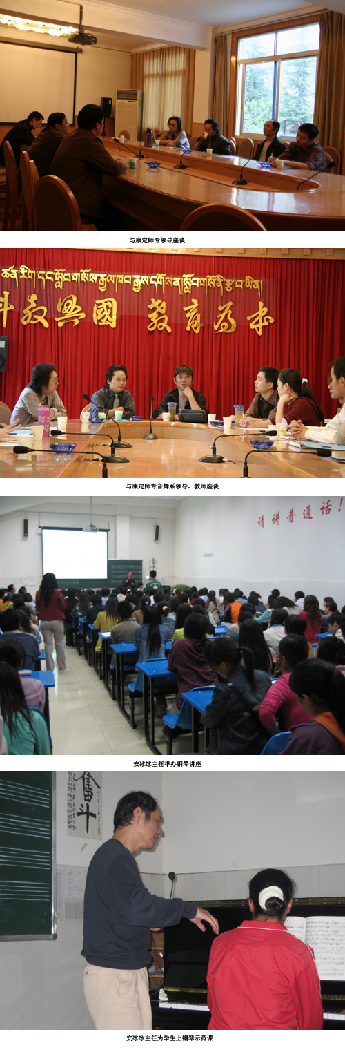 在为期一周的前期考察、支教活动中,安冰冰主任多次以座谈、教研会、个别谈话等形式与康定师专校、系领导和师生就办学质量、办学水平、学科建设、师资队伍建设、生源、设施设备配置等方面的情况进行了较深入的调查研究,对部分学科进行了重点听课,并以讲座的形式为部分学生公开授课,有针对性地指导青年教师的教学工作。